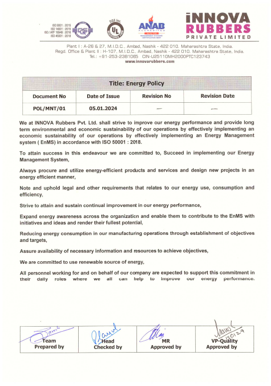 In the year 1968, Late Shri M. P. Bakshi, founder member and his partners started rubber moulding activity under the brand name ‘VIR’. To cater customer needs Innova Rubbers was set up in the year 1994 under the able leadership of Shri H. M. Bakshi – CMD